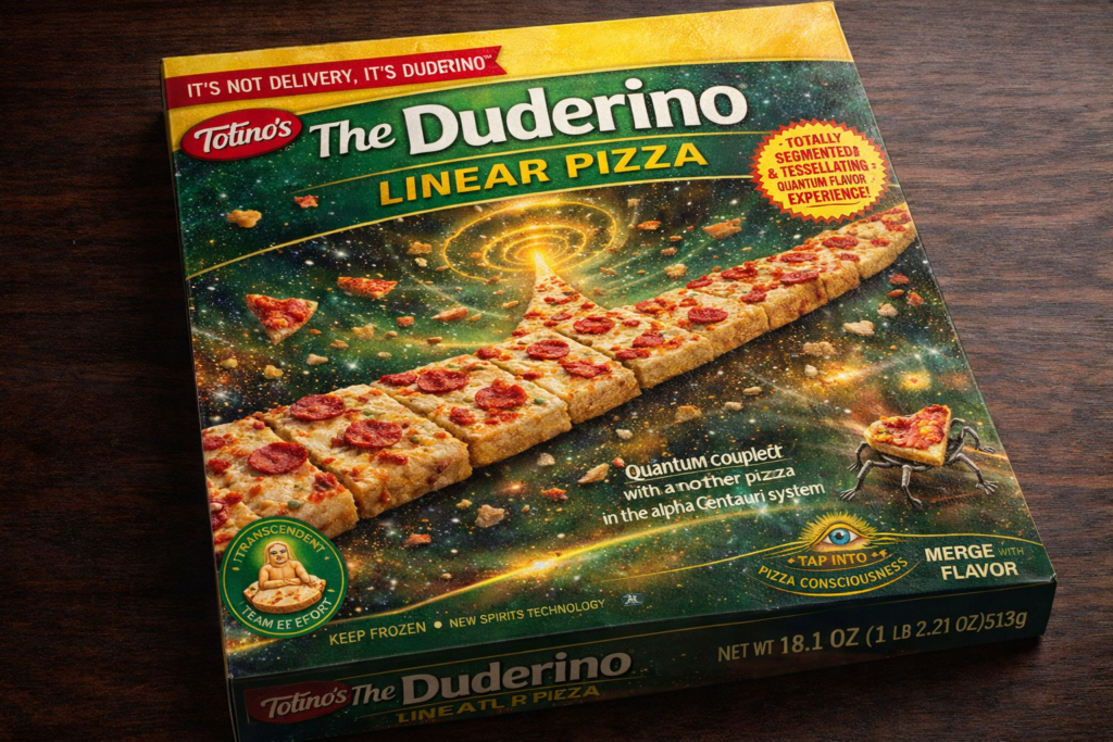 Merge with flavor. Achieve pizza consciousness. The Duderino doesn’t just satisfy hunger— it dissolves the boundary between consumer and consumed. You are the pizza. The pizza is you.
