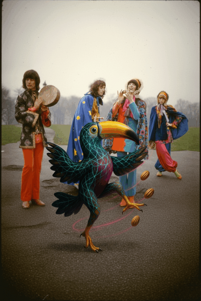 Neural bird retrained on pecan data, still dancing with people. The Can Can fell out of fashion with his friends.